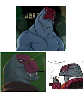 Charles Rex is his given name, but to the engineering company, he is merely TRHOM-79/13/8-10499. He is nearly seven feet tall, and hasn't been weighed since employment (and he won't often say who he works for). He hails from the gritty byways of London and carries a brusque accent- though he doesn't speak much. However, he is quite a gentleman, and always appears in a black tailored suit, or velvet and satin smoking jacket with a red ascot with a pin. Speaking of which, he also often carries a bent dublin pipe of briar or meerschaum, a cig in a holder, or a cigar- but he'll put it out if you ask nicely, and he's in the mood. Charle's is a little old school, and though he's beastly, he normally is comfortable keeping his hands to himself, and chatting a person up, first. He expects the same from others, and is averse to forwardness or clingyness.